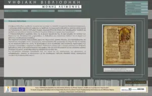 Η Ψηφιακή Βιβλιοθήκη της Μονής Λειμώνος έχει ως στόχο την προβολή της γραπτής πολιτιστικής κληρονομιάς, η οποία έχει αποθησαυριστεί στα ράφια και τις προθήκες της λειμωνιακής βιβλιοθήκης κατά τους πέντε αιώνες της λειτουργίας της, από το 1526 μέχρι σήμερα. Δημιουργήθηκε στο πλαίσιο του προγράμματος “Ανάδειξη και προβολή του πολιτιστικού πλούτου της Μονής Λειμώνος Λέσβου με τη χρήση νέων τεχνολογιών”.Η Ψηφιακή Βιβλιοθήκη χωρίζεται, όπως και το φυσικό πρωτότυπό της, σε τρία τμήματα: την συλλογή των Βυζαντινών και Μεταβυζαντινών χειρογράφων, τη Βιβλιοθήκη των παλαιτύπων βιβλίων και το Αρχείο των ελληνικών και οθωμανικών εγγράφων.