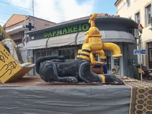 Την Κυριακή στις 22 Φεβρουαρίου στήθηκε στην κεντρική πλατεία μία συνολική αποκριάτικη ατμόσφαιρα, με τέσσερα περσινά άρματα και δύο φετινά, από το οποίο το ένα εστίαζε στους “σκλάβους της σταγόνας” και το άλλο στη βρύση που έσταζε! Εν ολίγοις οι διοργανωτές, όπως είναι φυσικό και εύλογο, δεν μπόρεσαν να αποστούν από την περσινή καλοκαιριάτικη ταλαιπώρια, ξαναθυμίζοντάς μας “οικεία κακά”!