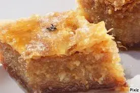 (φύλλο, αμύγδαλα , λίγη ζάχαρη, χοντρό σιμιγδάλι, πικραμύγδαλο (όχι εσάνς, όπως σήμερα) και ανθόνερο)