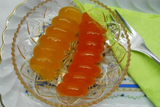 Ένα από τα γλυκά κουταλιού των αρραβώνων στα «σταλτά», που πήγαινε η νύφη με όλη της την οικογένεια στο σπίτι του γαμπρού. Τα γλυκά αυτά έπρεπε το ένα να είναι κόκκινο και το άλλο πράσινο. Τη φόρμα αυτού του γλυκού την έβγαζε ο «κυρ Γιάννης ο φαναρτζής» ( της κυρίας Στάσας –υφάντρας ο άντρας, το σπίτι μέσα στο στενό κοντά στη ΔΕΗ). Είχε μια διαδικασία το γλυκό αυτό, επειδή έπρεπε να το βάλεις στο ασβέστη για ώρες, να το πλύνεις με πολλά νερά, να το αποβράσεις και μετά να το σιροπιάσεις. (25 κομμάτια 1 κιλό ζάχαρη)