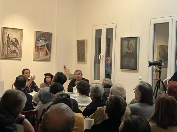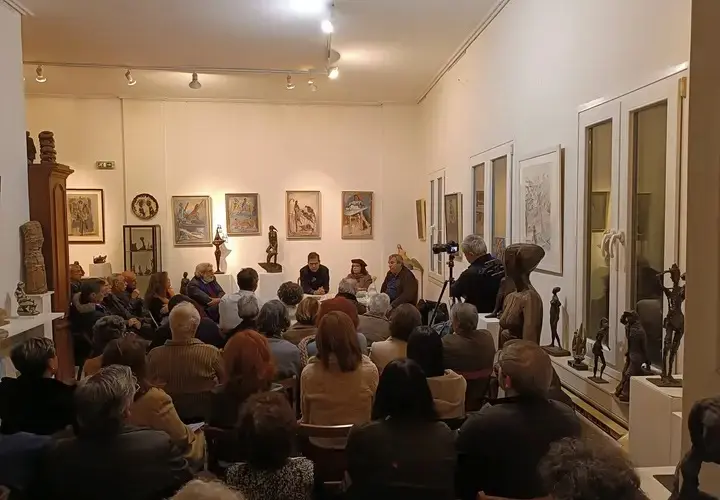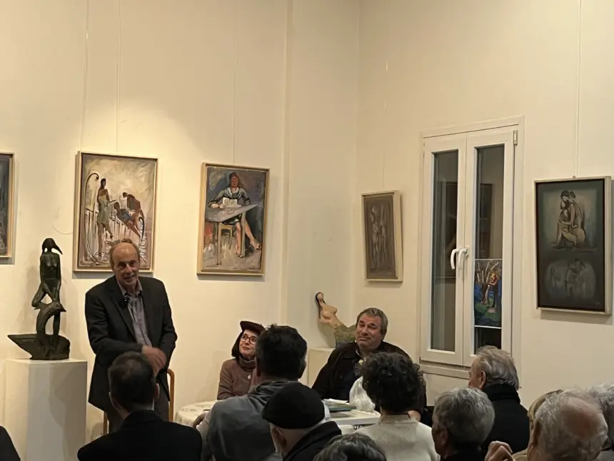 Για δεύτερη χρονιά το «Λεσβιακό Ημερολόγιο. Γράμματα – Τέχνες – Πολιτισμός» του Παναγιώτη Σκορδά ταξίδεψε στην Αθήνα και συνάντησε συνεργάτες, αναγνώστες και φίλους. Πέρυσι γιορτάστηκε μια σημαντική επέτειος, «15 χρόνια – 15 τόμοι», στον πολυχώρο «ΙΑΝΟΣ», φέτος και συγκεκριμένα την Παρασκευή, 6 Φεβρουαρίου 2026, πάνω από 120 φίλοι της Λέσβου και του Αριστείδη Πατσόγλου βρέθηκαν στο υπέροχο εργαστήρι – ατελιέ και κατοικία του σπουδαίου Λέσβιου γλύπτη και χαράκτη για να τιμήσουν τόσο τον οικοδεσπότη όσο και το Λεσβιακό Ημερολόγιο, τον Παναγιώτη Σκορδά και τους συνεργάτες του.