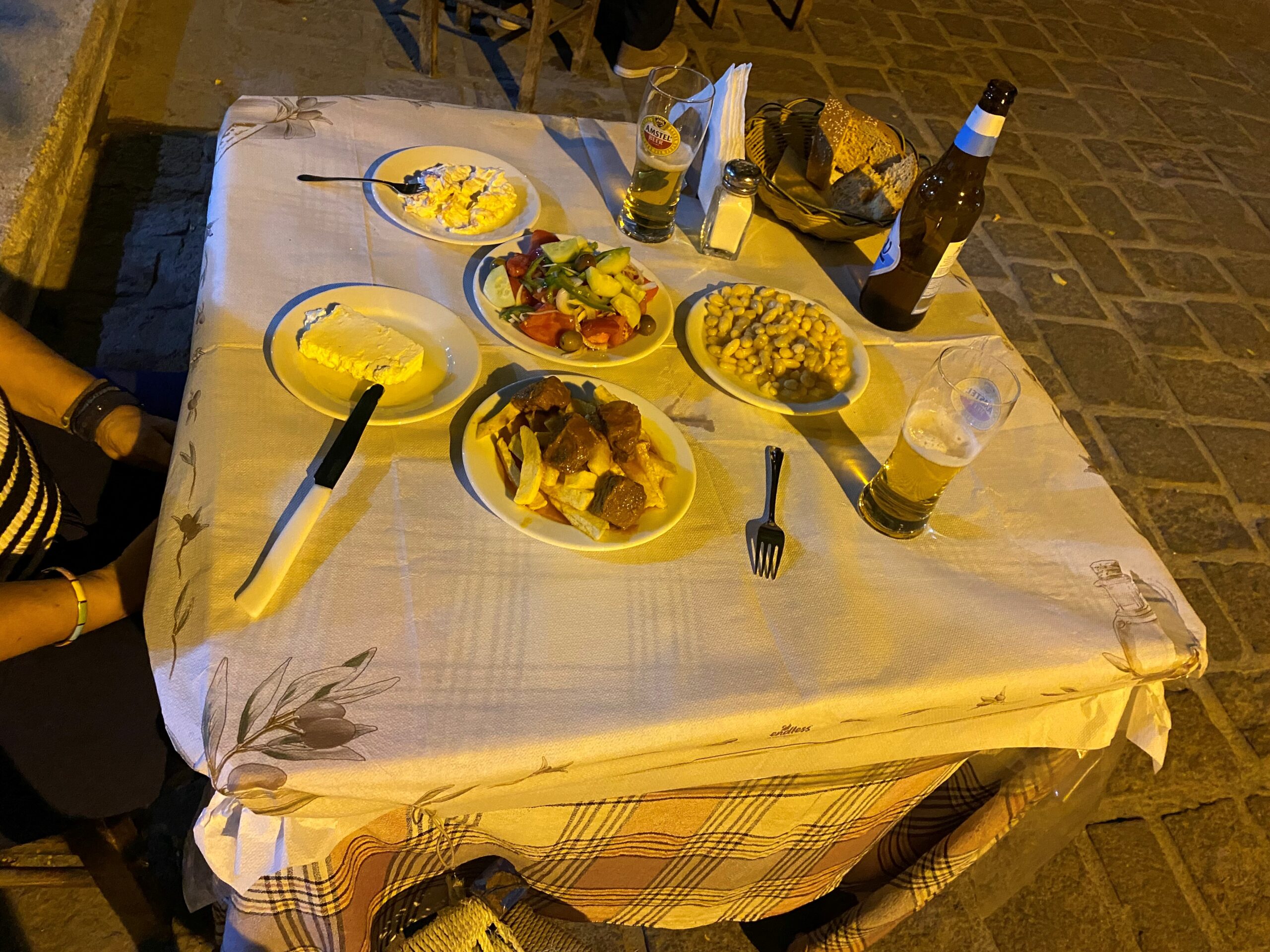 Πολιχνίτος, καλοκαίρι 2023. Οι ντόπιοι το ξέρουν αλλά ανεβάσαμε τη φωτογραφία και για τους ξένους. Πέντε πιάτα τόσο γεμάτα όσο φαίνονται, ψωμί, μία μπύρα, σέρβις, εξυπηρέτηση, χαμόγελα και πειράγματα με την ιδιοκτησία και το γκαρσόνι, κουβεντολόι και σχόλια με τους γύρω, συμμαθητές, φίλους, γειτόνους, που είχες να τους δεις από πέρσι ή από πολύ παλιά. Όλα αυτά, καλοκαιρινή ευωχία, απόλαυση και οικειότητα, κοστίζουν το αστρονομικά ποσόν των 12 ευρώ! Πού μπορεί να βρει κανείς τέτοιο πακέτο;( Όποιος χορταίνει, παίρνει και στο σπίτι του!) Εννοείται πως με την επόμενη μπύρα ή το επόμενο καραφάκι ( έχει την ίδια τιμή ) αλλάζει και ο μεζές, προς το καλύτερο εννοείται!