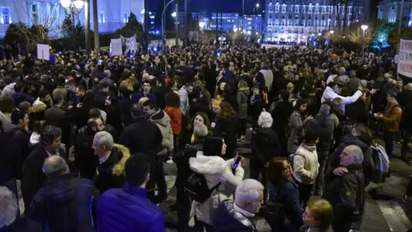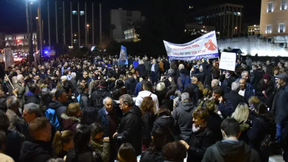 Πολυπληθής και δυναμική συγκέντρωση έξω από τη Βουλή