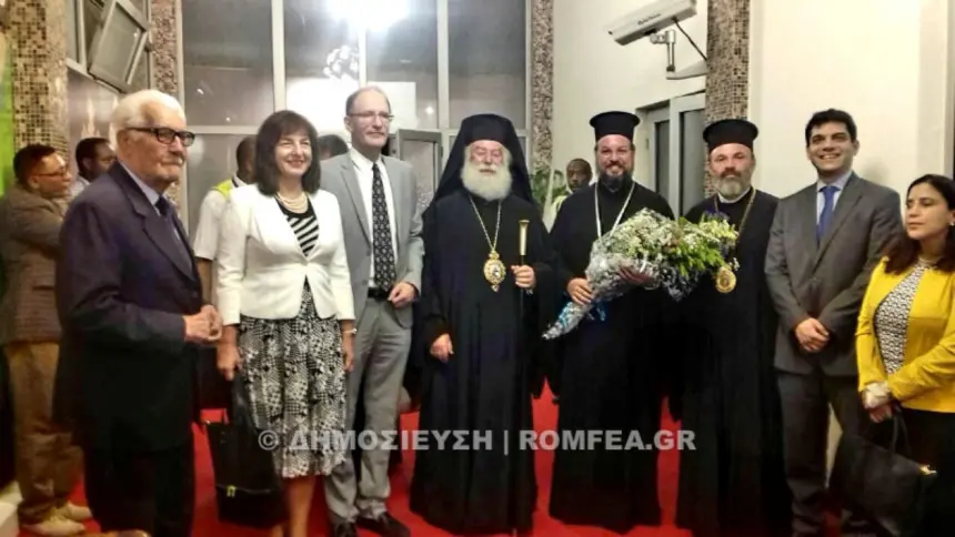 Η Α.Θ.Μ. ο Πάπας και Πατριάρχης Αλεξανδρείας και πάσης Αφρικής κ.κ. Θεόδωρος Β΄, συνοδευόμενος από τον Θεοφιλ. Επίσκοπο Βαβυλώνος κ. Θεόδωρο-Αριστερά ο Δημήτρης Συκάς