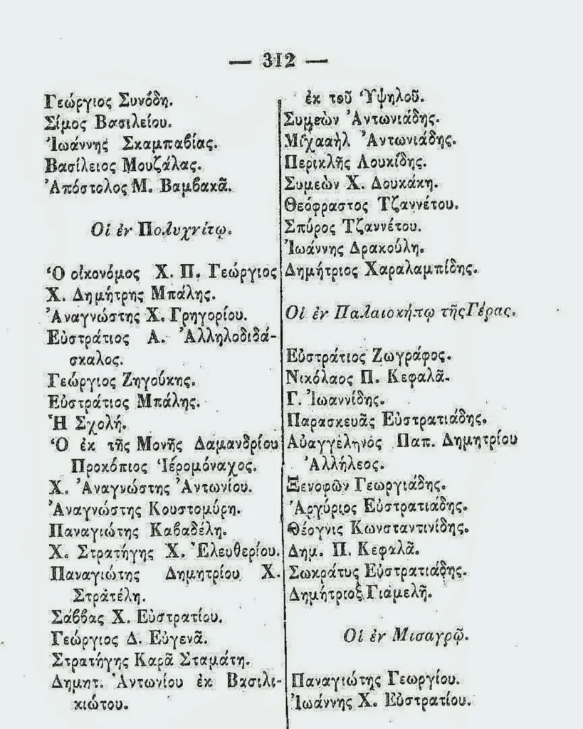 Πηγές: Χαρίλαος Καράτζανος, Πολιχνιάτικα ιστορήματα 1984