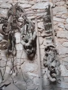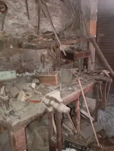 Περνούσα συχνά από το σιδεράδικο του Στρατή Σαντή (Αλετρά), μιας και ήταν απέναντι από το καφενείο μας, στο στενό του αρτοποιείου του Πονηρού. Στεκόμουν γεμάτος περιέργεια και αμηχανία καθώς έβλεπα ανάκατες εικόνες από το φυσερό (μουχάνι το λέμε στο χωριό), από αναμμένα κάρβουνα, πυρακτωμένα σίδερα, τον Στρατή μουτζουρωμένο να σφυρηλατεί, καθώς κρατούσε σφιχτά το σίδερο με μια μεγάλη τανάλια, και με τη βαριά χτυπούσε το σίδερο πάνω στο σίδερο(αμόνι), τη γούρνα με το νερό όπου το βύθιζε για να ατσαλώσει, για να το μετατρέψει τελικά σε ένα χρηστικό αντικείμενο, που θα κρατούσε πια χρόνια.